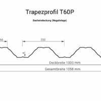 Das Trapezprofil T60 P Dach ist eine Hochleistungslösung, die ideal für Industriehallen, große Lagergebäude und anspruchsvolle Dachkonstruktionen geeignet ist. Mit einer signifikanten Profilhöhe von 60 mm und einer Deckbreite von 1000 mm bietet dieses Profil eine überragende Tragfähigkeit und Stabilität.